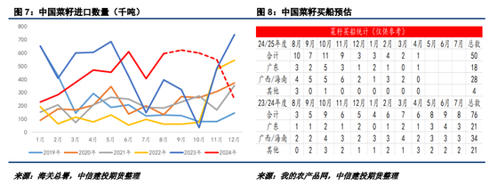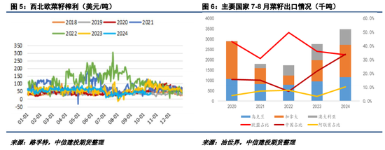 中加关系的边际缓和预期、欧盟减产利好的不断兑现有望提振ICE菜籽情绪,但内盘情绪恰恰相反,前期被相对忽视的现实压力或在10月底重新抬头。2024年8月中国菜籽进口数量接近60万吨,而根据商业买船预估,10-11月平均进口数量依然在55万吨以上,同比增加10万吨以上。