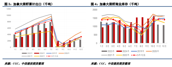 截至10月13日,加拿大菜籽累计出口233.62万吨,同比增加167.6%,兑现全球菜系整体减产引发的出口利好。但另一方面,由于本年度加拿大菜籽呈现丰产,因此加菜籽商业库存仍处于相对高位。达到163万吨。我们预计加菜籽后期继续走强概率较高,但想复刻2021、2022年的历史走势较为困难,理由是全球供应链的相对改善以及中国进口潜力的下降。